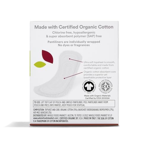 Specification: 365 by Whole Foods Market, Ultra Thin Pantiliners, Made with Organic Cotton, 24 Count