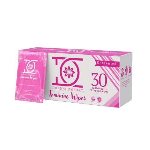 DonnaComfort Flushable Feminine Wipes – PH balanced, Fragrance free | Sensitive Formula with Aloe Vera and Vitamin E (30 Individually wrapped singles)