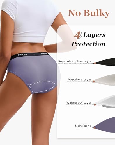 INNERSY Women’s Bikini Period Underwear Cotton Menstrual Leakproof Panties 3-Pack