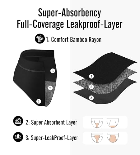 KEECOW Period Underwear For Women, Leak-Proof 2.0, Comfort, Postpartum, Heavy Flow, Brief, 3 Pack