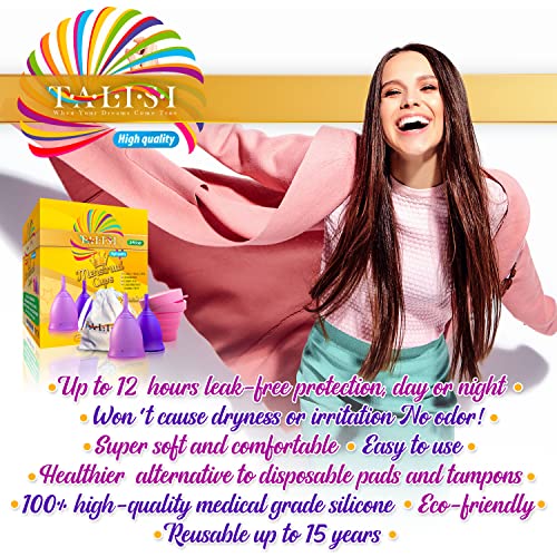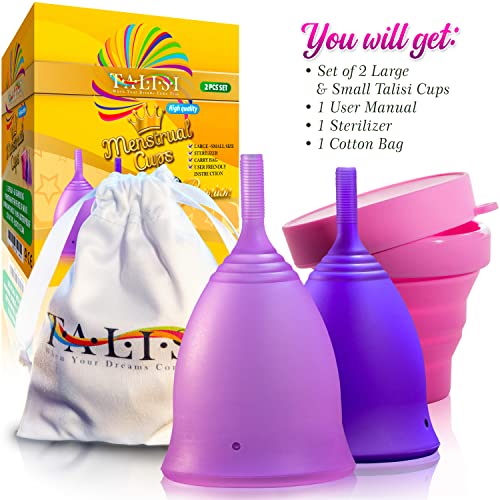 Specification: Talisi Menstrual Cups Set of 2 with Collapsible Silicone Foldable Sterilizing Cup – Tampon and Pad Alternative – Soft Reusable Period Cup
